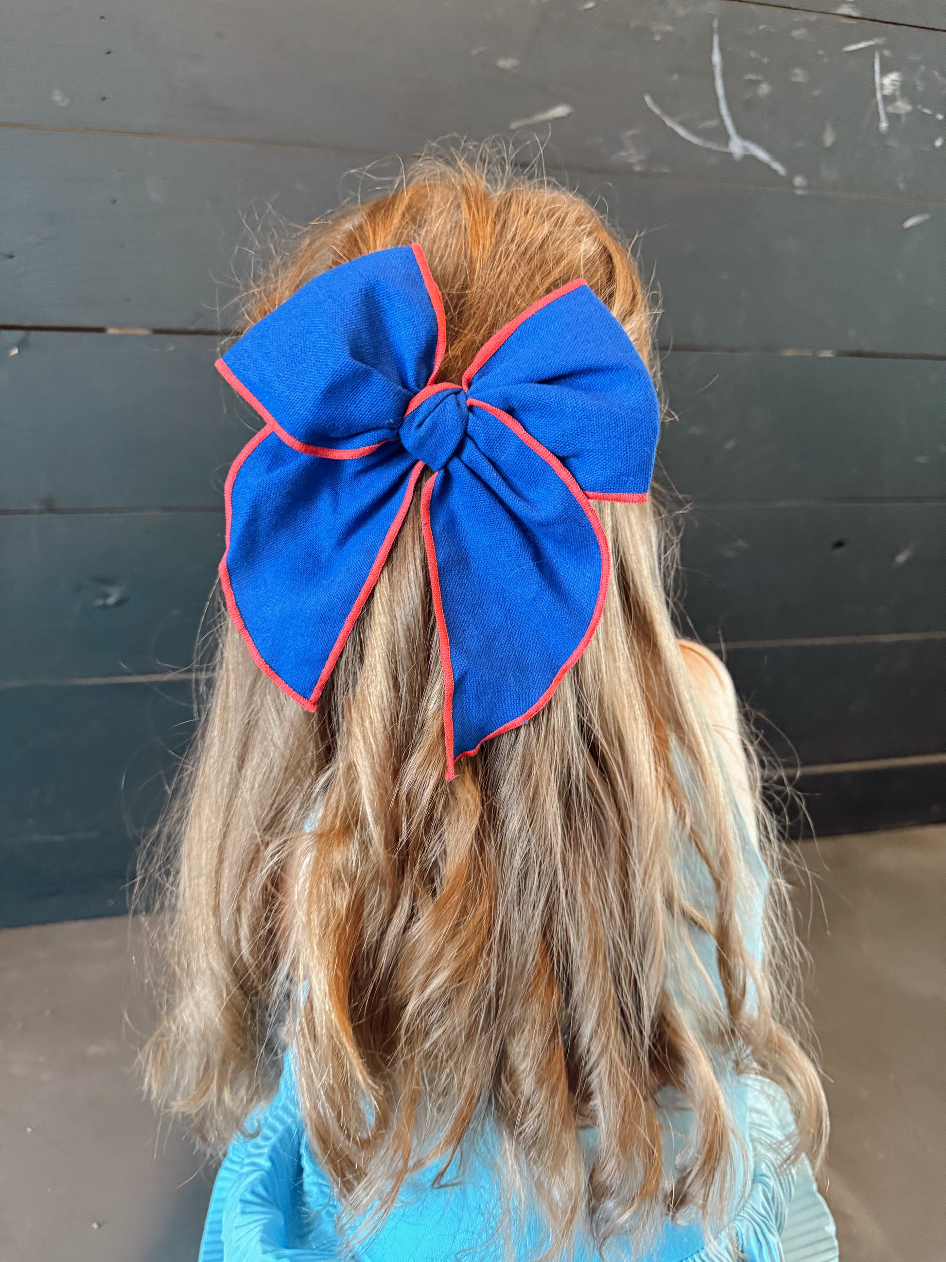 BLUE WITH RED THREAD Big Bow